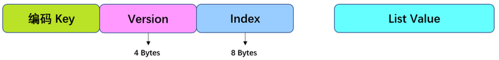data_key 由三个部分组成:编码 Key 、 4 Bytes 的版本号 Version 和 8 Bytes 的该节点的底层索引。 data_value 就是该列表元素对应的 Value 。