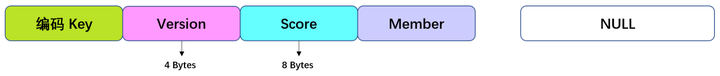 data_key 由四个部分组成:编码 Key 、 4 Bytes 的版本号 Version 、该条记录的 Score 以及 Member 。由于 data_key 中储存了所有的信息,因此这里的 data_value 依然为空。