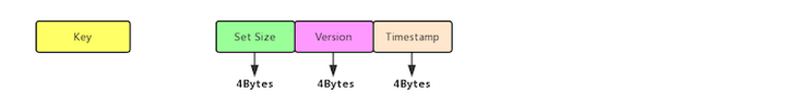 meta_key 就是 Set 结构的 Key 本身,meta_value则包含 3 个部分: 4 Bytes 的 Set Size (当前集合的 member 数量)、 4 Bytes 的版本号 Version 、 4 Bytes 的有效时间戳 timestamp 。