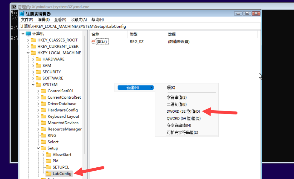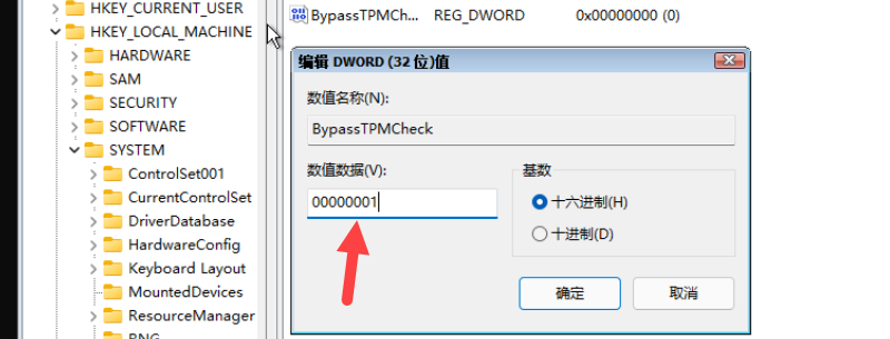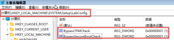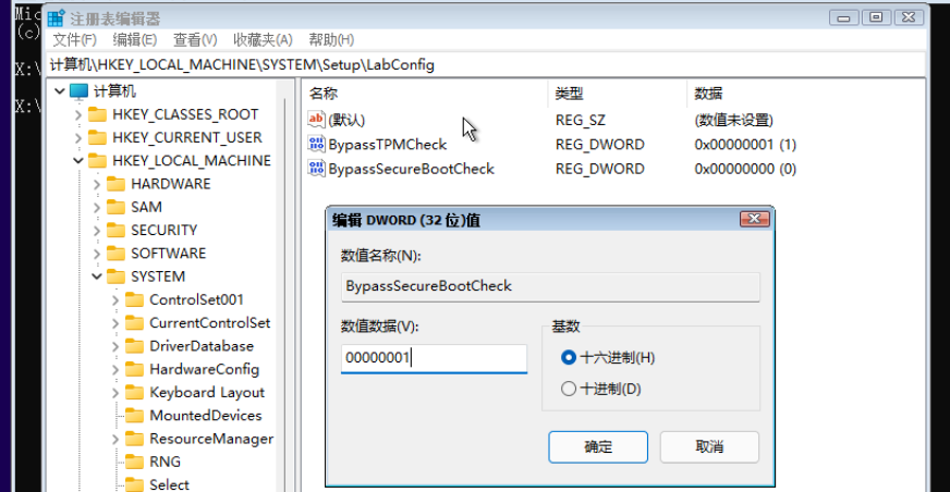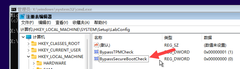 再新建一个32位的值,名称为“BypassSecureBootCheck”