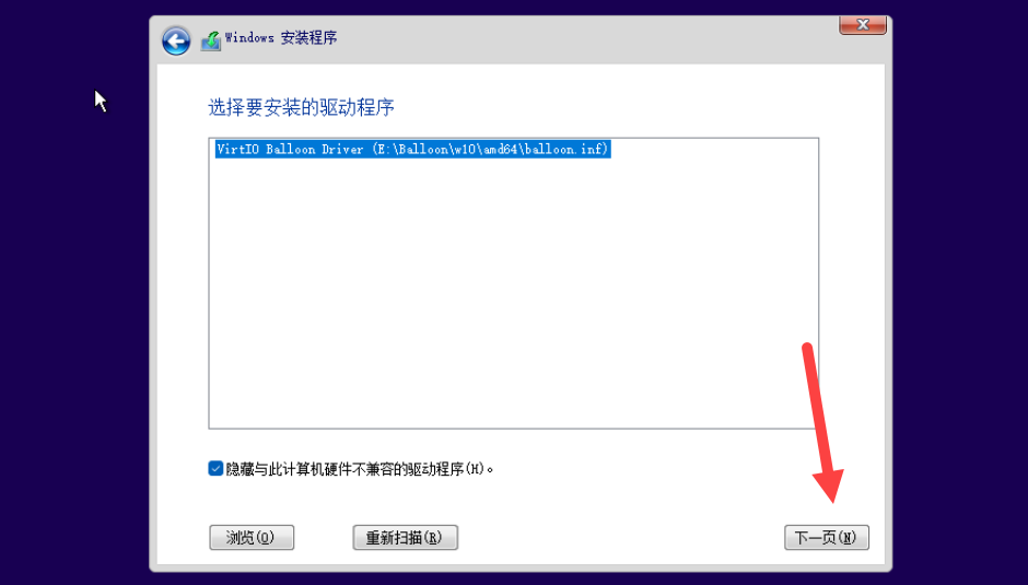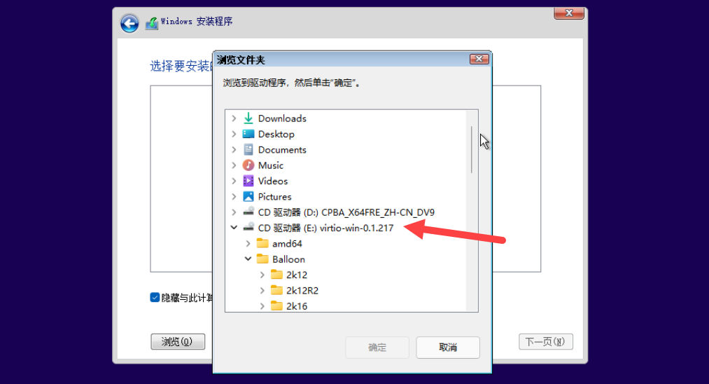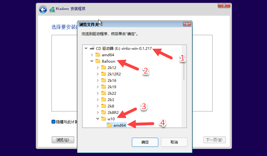 “VirtIO驱动” ->"Balloon" ->"w10" ->"amd64"