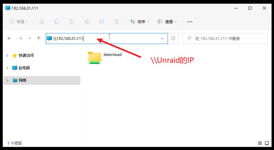 打开"我的电脑",输入“\\unraid的IP”
