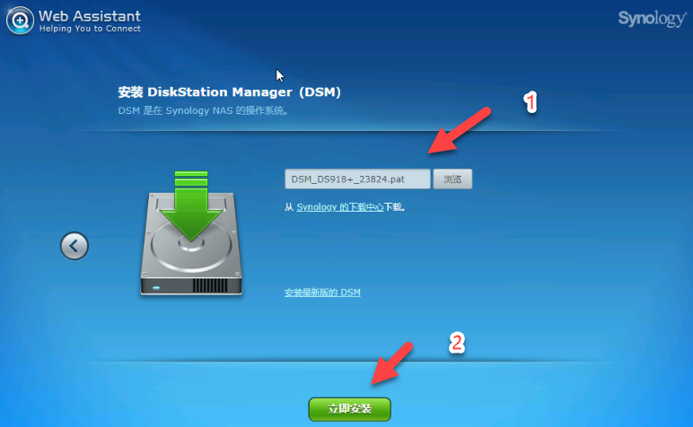 选择之前放在“iso”的镜像(.pat文件),跟着“立即安装”