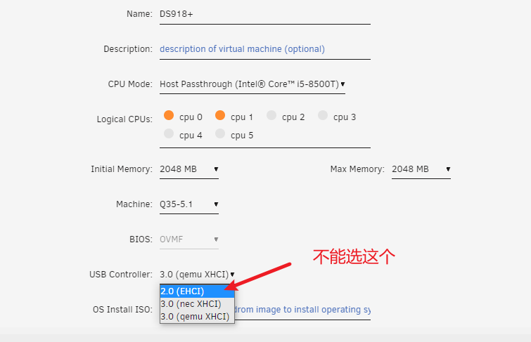 USB控制器不能选择2.0,我选的是第三个,修改完记得网络改回e1000