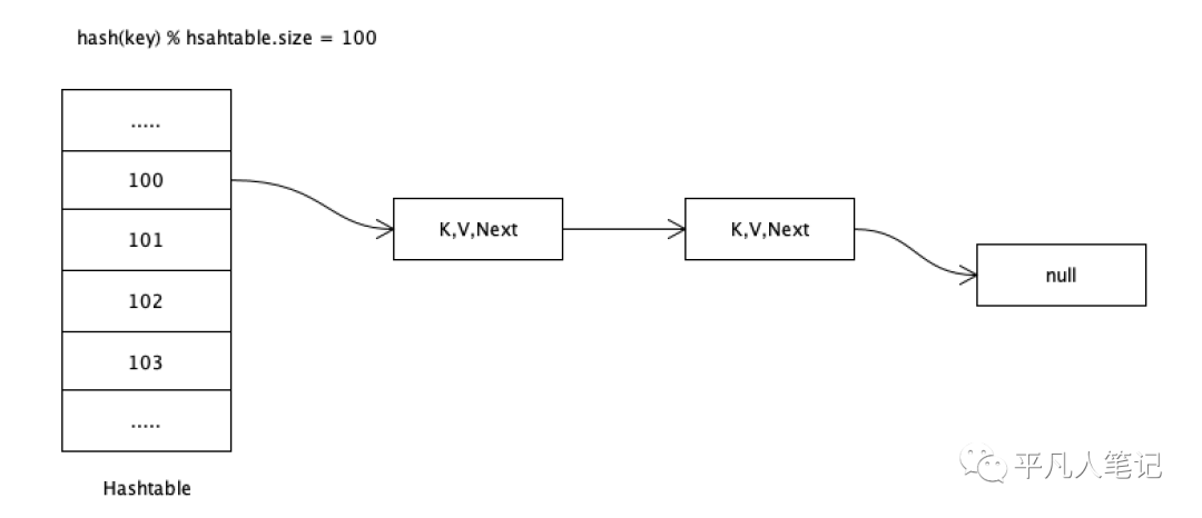 • 不同的key输入,可能会有相同的输出,那么就会产生hash冲突,通过链表法来解决冲突。