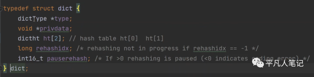 ht 就是hashtable,因为需要rehash,所以数组长度是2,一个是老的hashtable,另外一个是新的hashtable,新的是老的hashtable大小的2倍。如果没有rehash的话,只会用到其中一个。