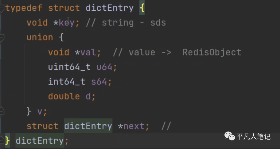 union中是value的类型,同一时间只能用一个;比如val就是key-value键值对类型,redis底层会进一步封装成redisObject对象;next指向链表中的下一个节点。