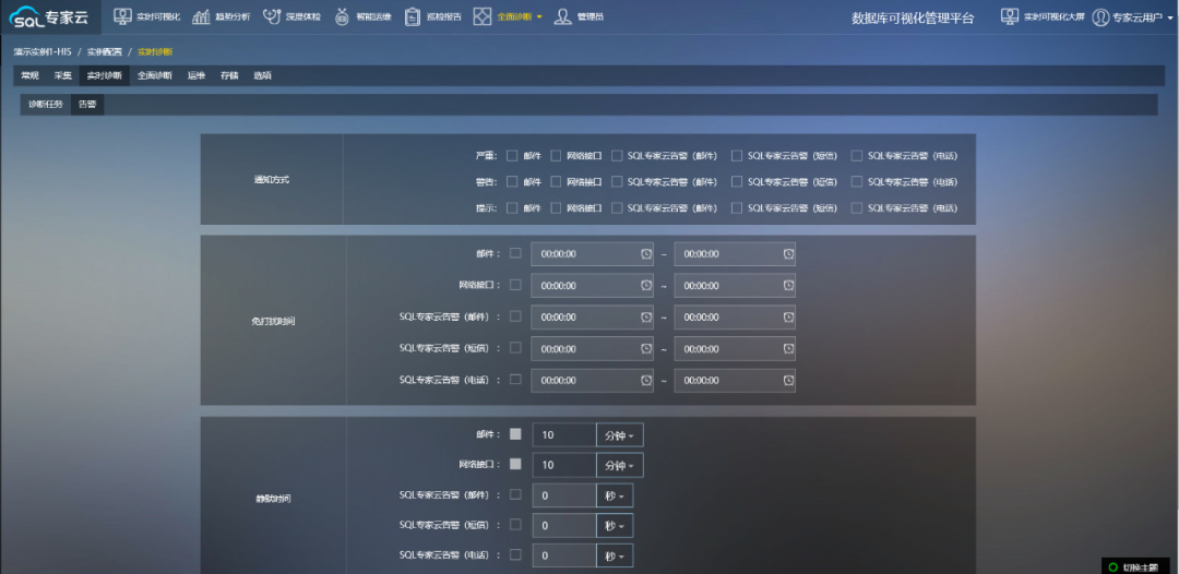 采集:SQL专家云像“摄像头”一样,对环境、参数配置、服务器性能指标、活动会话、慢语句、磁盘空间、数据库文件、索引、作业、日志等几十个运行指标进行不同频率的实时采集,保存到SQL专家云自己的数据库中。采集以“非入侵”的方式完成,不需要到生产数据库服务器上安装代理程序。