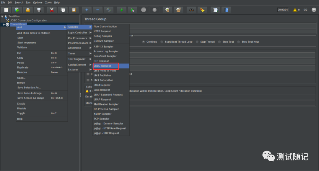 5、线程组里面添加JDBC Request