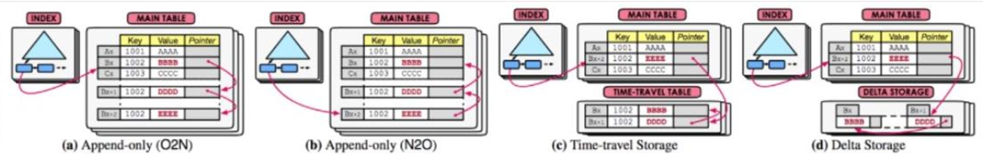 数据库通过无锁指针链表维护多个版本,使得事务可以方便的读取特定版本的数据。