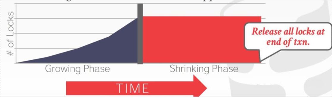阶段二(Shrinking):事务释放在Growing阶段申请的锁,并不能再申请新的锁。