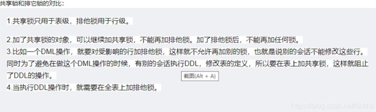 关于共享锁排它锁、表级锁行级锁的解释清参考下面: