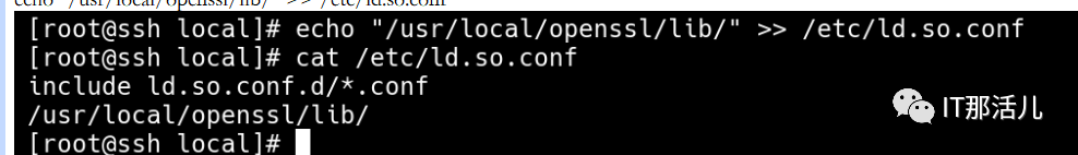 echo "/usr/local/openssl/lib/" >> /etc/ld.so.conf