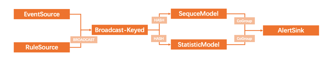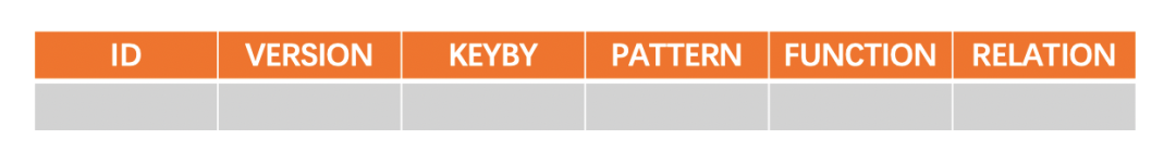 Id:规则ID; Version:规则对应的版本号; Keyby:规则分组字段(如需分组); Pattern:CEP Pattern 序列化后的 Json 字符串; Function:CEP 匹配后处理的 PatternProcessFunction; Relation:统计型和规则型之间的与、或关系(前提:统计型和规则型的 ID 相同)。