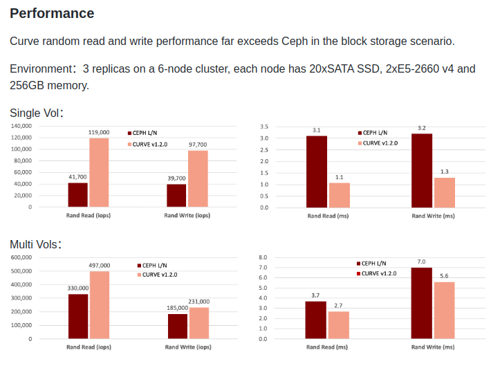 Curve的研发,萌芽于开源Ceph存储系统难以满足网易业务发展的朴素需求,成长于云原生在各业务快速落地的契机。回顾2018年,网易已完成电商业务全面容器化,开始采用Kubernetes + Operator运行有状态应用,云原生存储基础设施的完善也被提上日程。即便从当前CNCF Landscape来看,云原生存储项目依然远不及计算侧和网络侧丰富,开源的更是稀缺(图中白底部分),如果再加上稳定、高性能、公有云私有云均可使用的灵活弹性、简单易运维这些云原生场景下对存储系统的基础要求,则市面上基本没有合适的系统可供选择。这是Curve得以健康发展的外在驱动力。得益于Raft一致性协议及创新架构的技术路线,目前,无论采用SATA SSD块存储,还是NVMe块存储,Curve的随机读写、延迟性能都远优于老牌开源存储系统Ceph,异常状态下的性能稳定性同样有接近一倍半关系的领先程度。而和另外一个CNCF沙箱项目,使用Go语言编写的基于容器的块存储开源软件OpenEBS相比,Curve同时覆盖块存储和文件存储,更有利于建设统一的数字化基础软件,运维管理成本要求也更低。Curve可以应用于各类云原生基础设施平台作为存储底座,如:- 对接OpenStack平台为云主机提供高性能块存储服务;