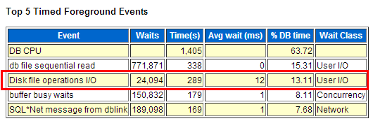 当文件系统设置了FILESYSTEMIO_OPTIONS=NONE时,会出现“db file async I/O submit”后台等待事件,而正常应该是出现“db file parallel write”