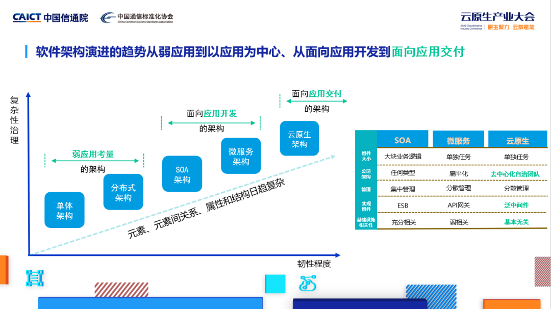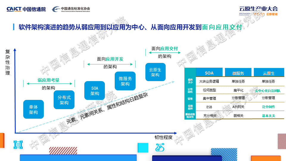 随着云计算等新一代信息技术的应用,海量数据处理、软件自动化配置、应用快速迭代等需求给传统软件架构带来了严峻挑战。栗蔚表示,软件架构演进的驱动因素是治理复杂性、提升韧性,从而达到敏捷交付和价值聚焦的目标。传统软件架构在设计、交付、维护、升级等方面出现瓶颈,难以适应以云计算为核心的新IT环境,软件架构从面向应用开发向面向应用交付的演进。