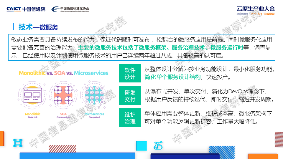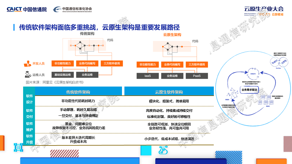云原生正引领新一代软件架构的变革,代表着新生产力的飞跃发展。在6月15日召开的“2022云原生产业大会”上,中国信息通信研究院(以下简称“中国信通院”)正式发布《云原生 新一代软件架构的变革》白皮书,全面展示了云原生作为新一代软件架构给企业带来的竞争优势。在会上,中国信通院云大所副所长栗蔚对此进行了深度解读。