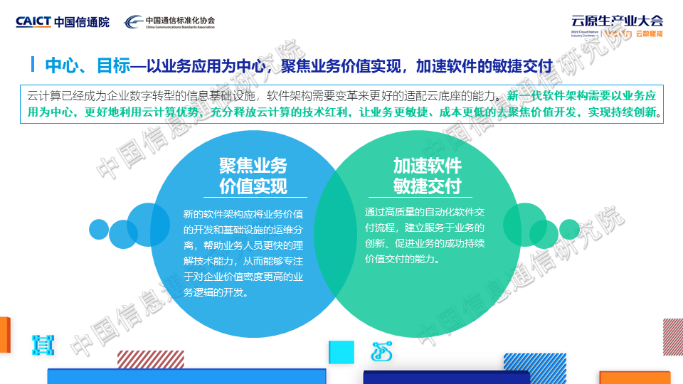 一个中心、两个目标:以业务应用为中心,聚焦业务价值实现,加速软件的敏捷交付