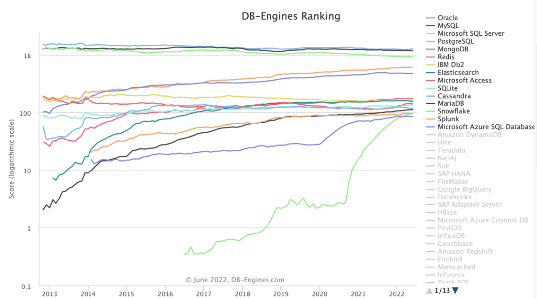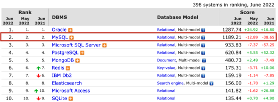 MySQL可能是很多数据库从业者的启蒙数据库。DB-Engines官网6月最新数据显示,MySQL是全球最受欢迎的开源数据库。在所有数据库排名中,MySQL仅次于Oracle,稳居全球数据库亚军之位。