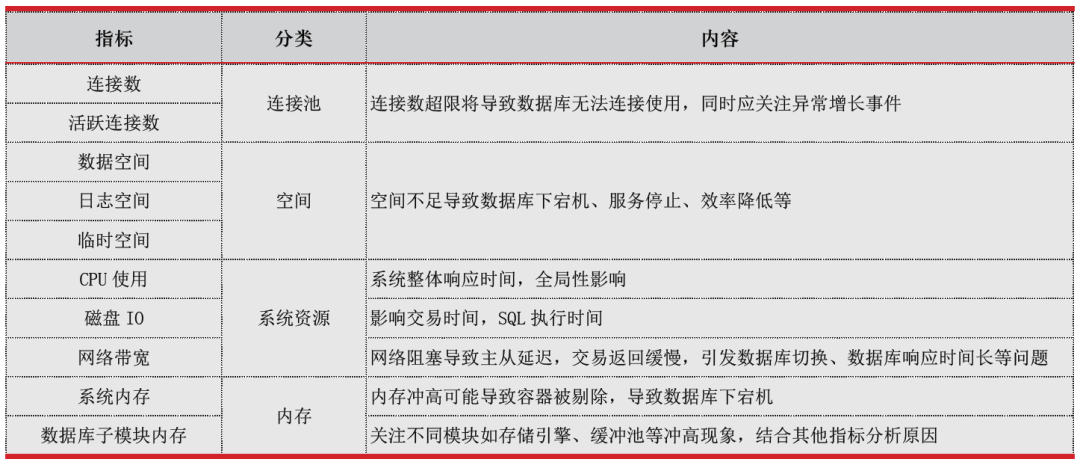 数据库运行期间的基础数据对于问题分析非常关键,MySQL作为开源数据库,与DB2、ORACLE等商用数据库相比,缺少官方的基础数据收集和配套分析工具。对此,工商银行在运行相关数据时,重点关注了系统资源、数据库连接数等指标。数据库运行指标见表1。值得注意的是,实际工作中并非只有SQL语句执行缓慢会出现问题,如对大结果集的查询也可能出现内存不足(数据库内存或JVM内存)、网络阻塞等问题。