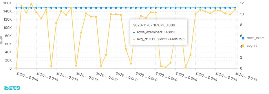 据统计,在优化之前,被优化SQL的平均扫秒行数为148889.198,平均RT为505.561毫秒。而优化之后,平均扫描行数为12.132,大约降为优化前的万分之一,而平均RT降至0.471毫秒,也大约降低到优化前的千分之一。
