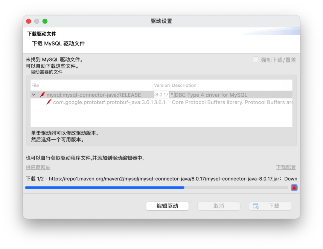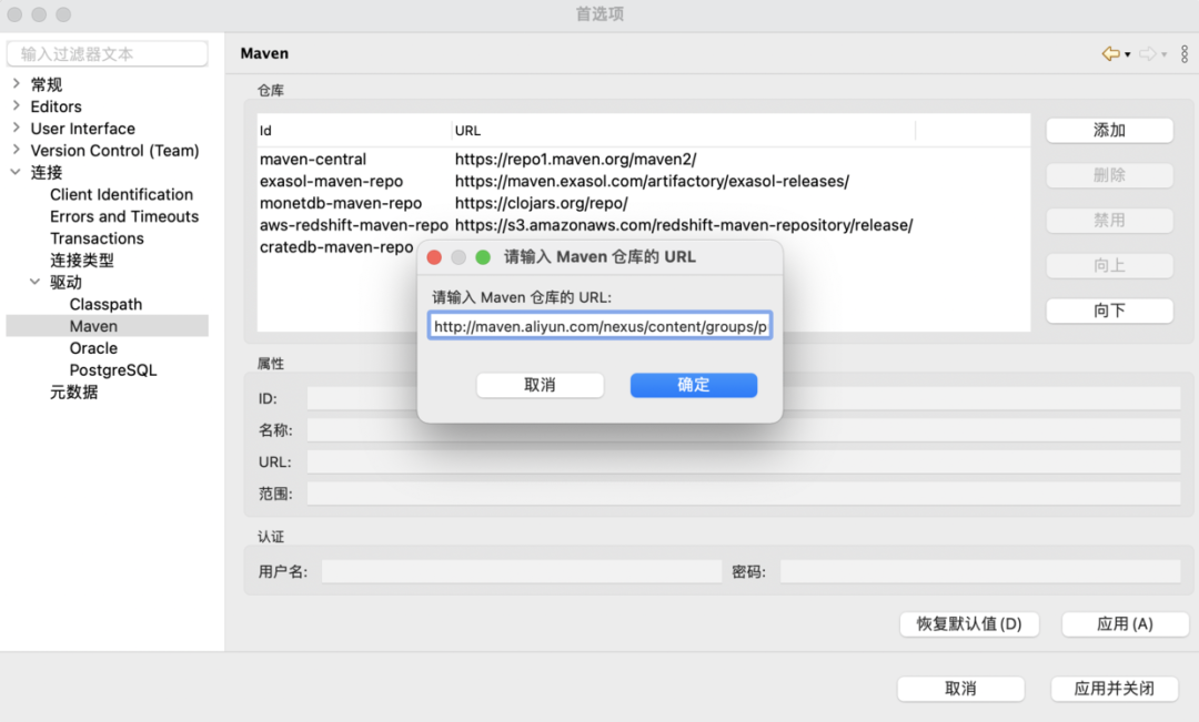 点击「测试链接」,如果使用默认的 Maven 仓库时,下载驱动会非常慢.