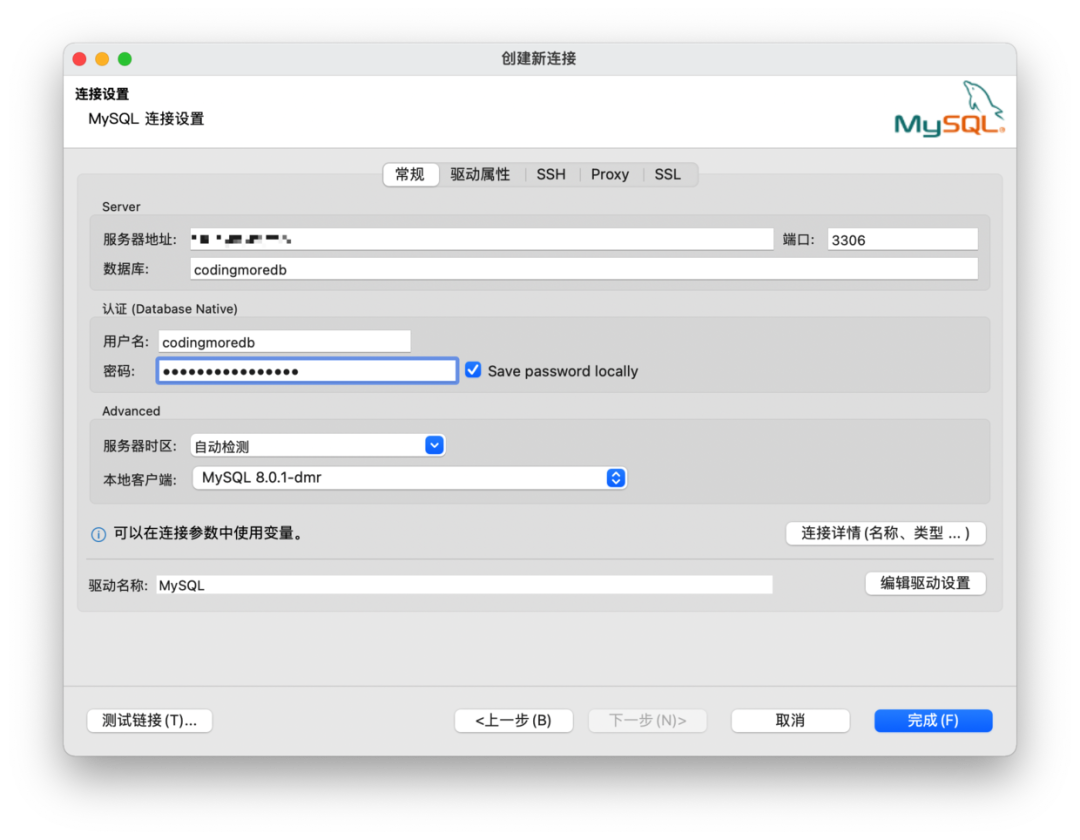 点击下一步,填写数据库连接的信息.
