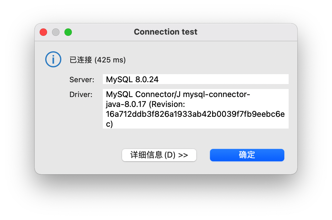 如果你按照上面配置了阿里云的镜像仓库,程序就不一样了,点击「测试链接」,会瞬间弹出「连接已成功」的提示框.