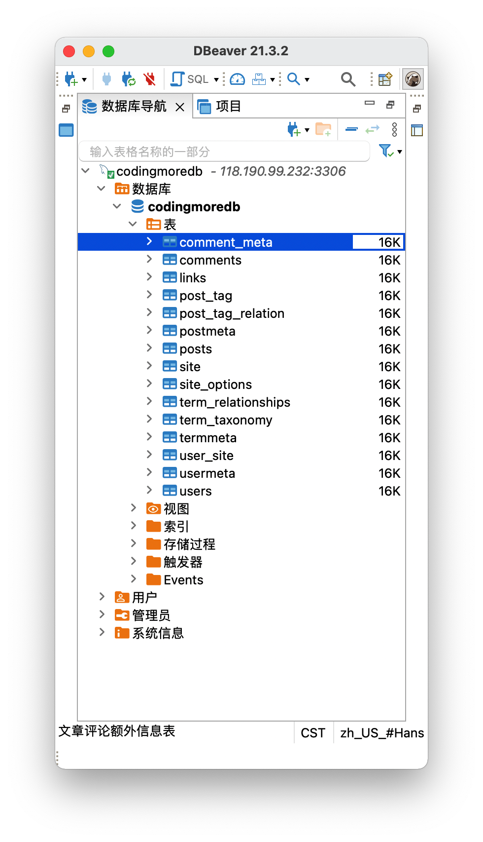 连接成功后,就可以看到数据库的表、视图、索引等,这不就和Navicat十分相似了吗?