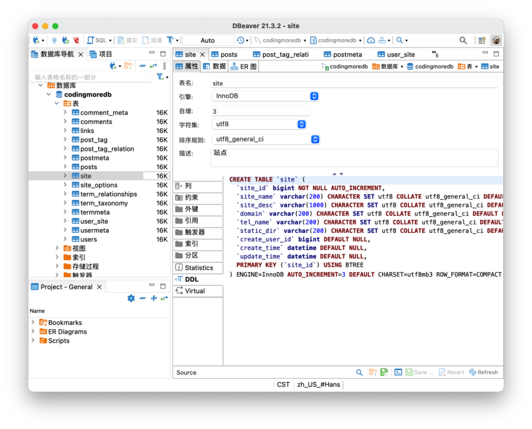 点击「DDL(Data Definition Language,数据定义语言)」可以看到详细的建表语句.