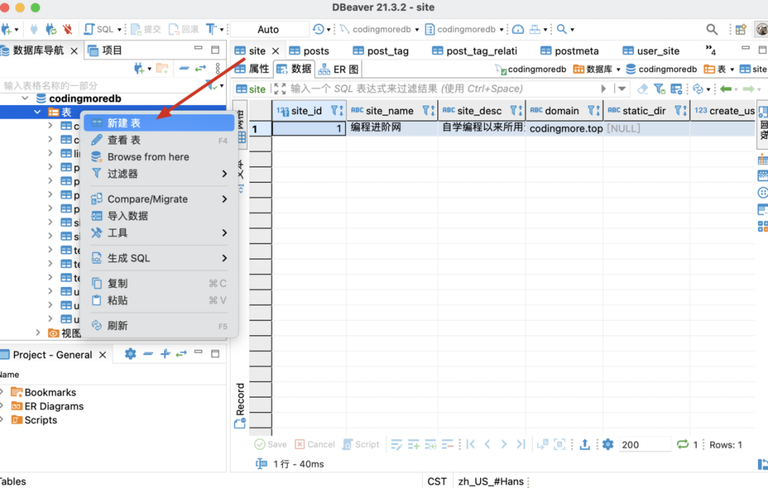 在左侧选择「表」,然后右键选择「新建表」即可建表id。