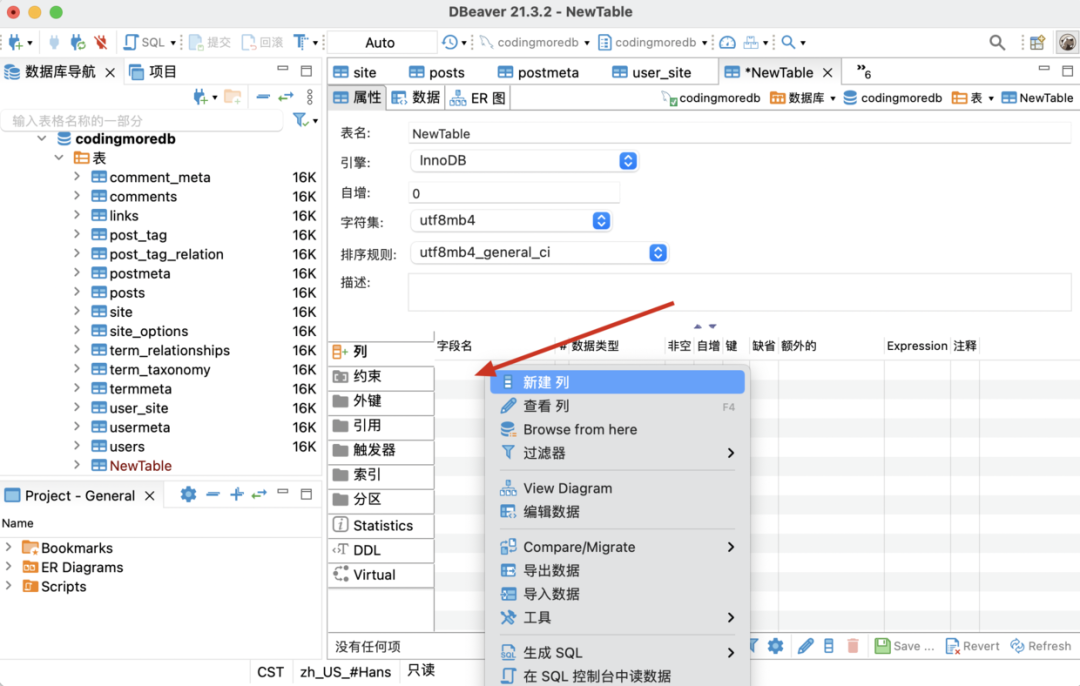 之后在右侧列的区域右键,选择「新建列」即可添加字段.