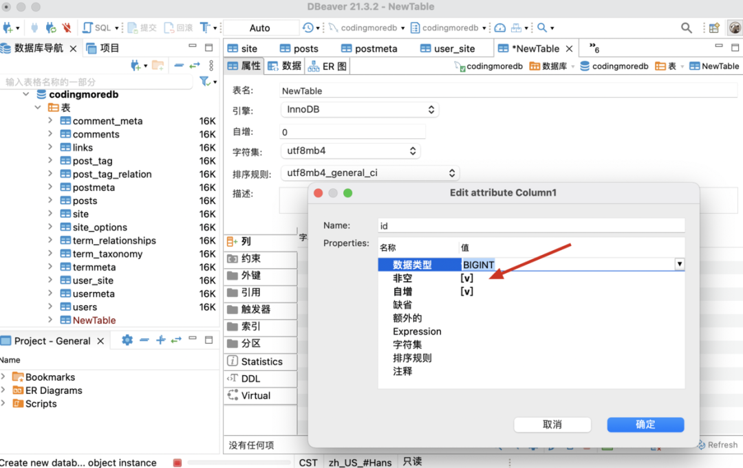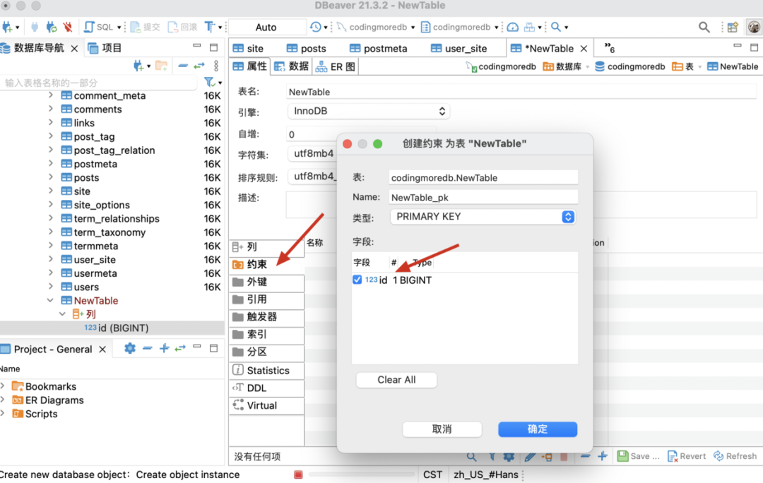 表示真,.紧接着在「约束」里选择 ID 将其设置为主键.