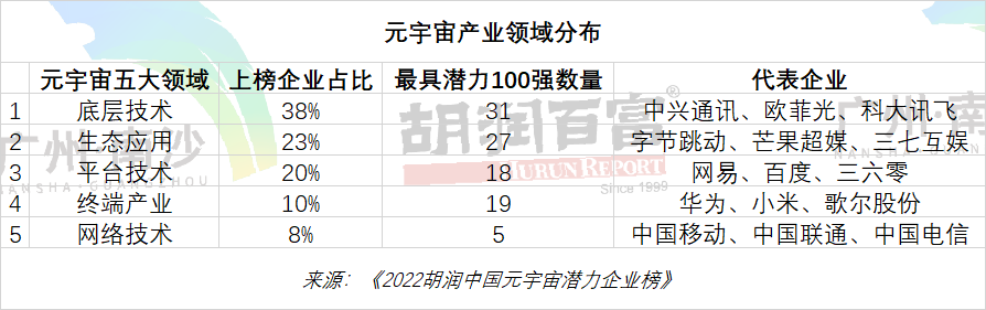 “在元宇宙时代还没真正来临的当下,游戏、影视、虚拟IP是当前比较热门的试验田。”胡润介绍,从上榜企业的主营业务来看,最具潜力100强企业中最多的是从事传媒和娱乐行业有19家。传媒和娱乐行业公司,已经积极运用现有技术手段探索元宇宙的应用可能。