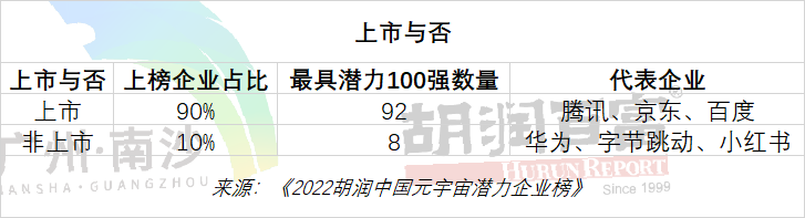 90%为上市企业,以腾讯和阿里为代表;10%为非上市企业,以华为和字节跳动为代表。