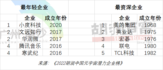 上榜企业平均年龄21岁,最年轻的是2岁的小度科技,最资深的是54岁的美的。最资深企业多是消费电子行业。