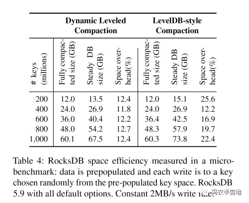 在经过若干年开发后,RocksDB 的开发者们观察到对于绝大多数应用来说,空间使用率比写放大要重要得多,此时 SSD 的寿命和写入开销都不是系统的瓶颈所在。实际上由于 SSD 的性能越来越好,基本没有应用能用满本地 SSD,因此 RocksDB 开发者们将其优化重心迁移到了提高磁盘空间使用率上。