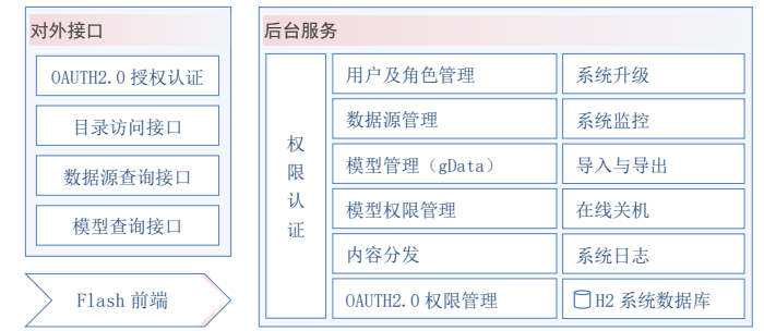 BIServer 是 GBaseBI 商业智能系统的核心,控制着用户、数据、文件和它们的权限,其构架如下图: