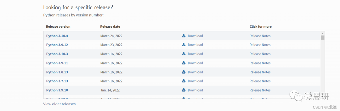 先下载安装包:Python安装包下载地址,选择合适的版本,下载即可。