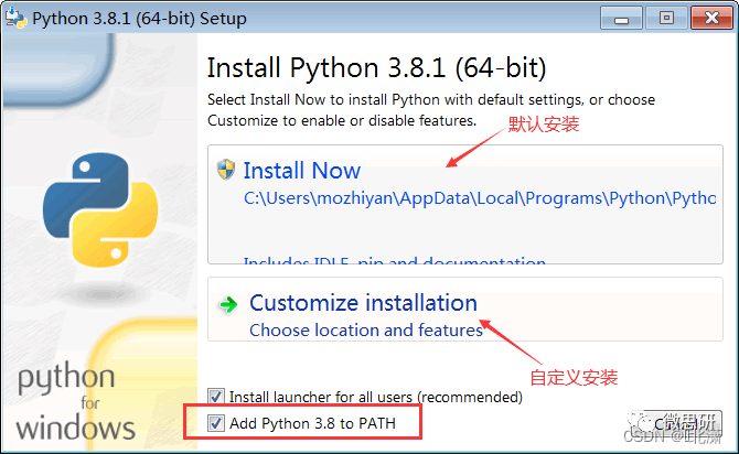 需要将Add Python 3.8 to PATH