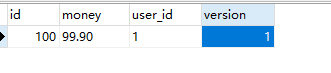 线程2:执行更新操作,update t_account set money = money + 10,version=version+1 where id = 100 and version = 1。执行成功此时数据库中id为100的帐号信息如下: