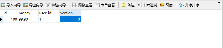 钱没有发生变化(扣减 都是10元),版本变成了3。