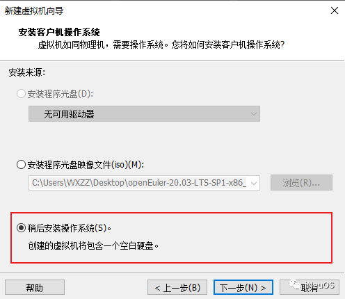 2.3 选择稍后安装操作系统