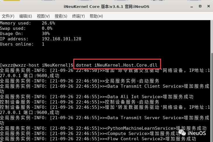 运行后台服务:dotnet iNeuKernel.Host.Core.dll