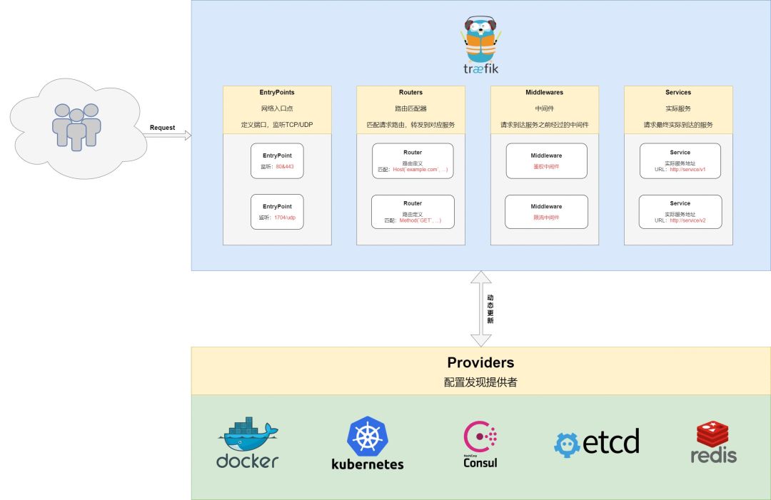 Traefik 会查询提供者 API 以找到有关路由的相关信息,当 Traefik 检测到更改时,会动态更新路由配置。