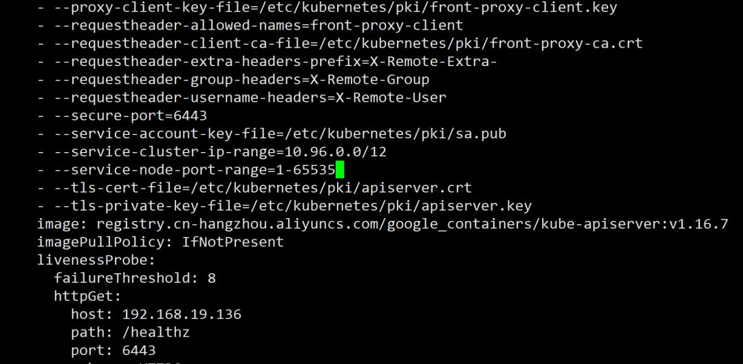 vi /etc/kubernetes/manifests/kube-apiserver.yaml