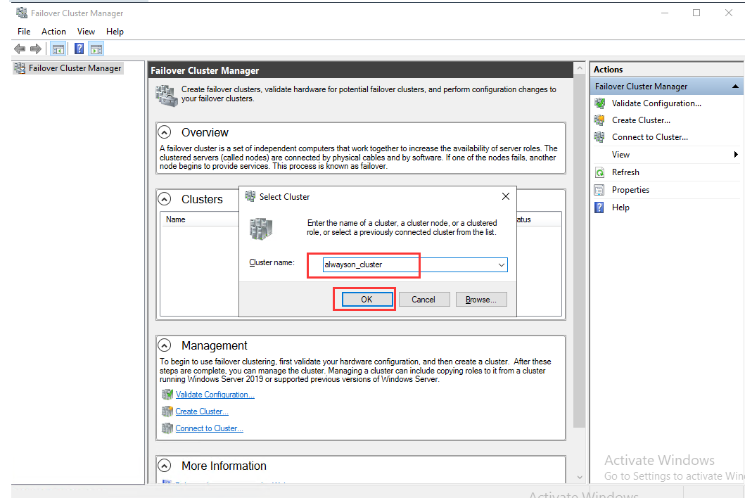 在其他节点上打开 Failover Cluster Manager 也可以连接到创建的集群