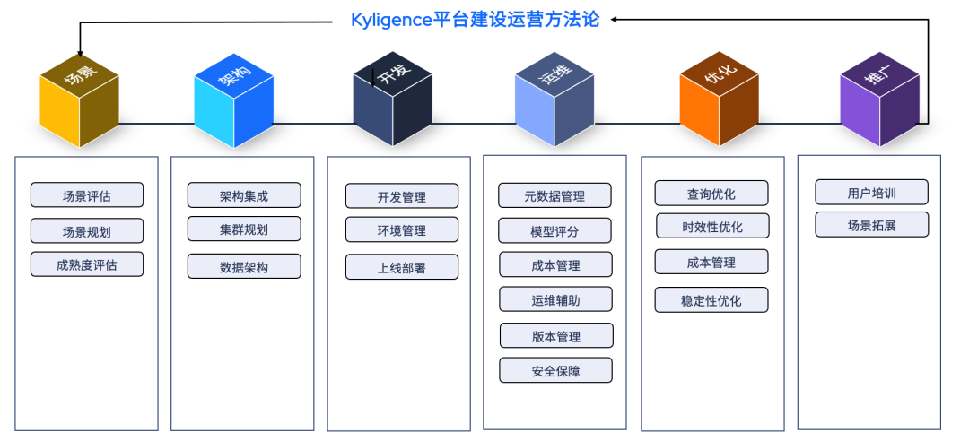 总之,平台建设运营并非一蹴而就,而是一项持续性的活动。企业需要有一套体系化的运营方法论作为支撑,再逐步构建完整的数据服务能力。Kyligence 在实践中不断总结实施经验,构建了一套完整的平台建设运营方法论,并将这套方法论运用在实践中,不断打磨符合行业的建设运营方法论,将理论与实践结合,助力多家领先银行推进数字化转型。