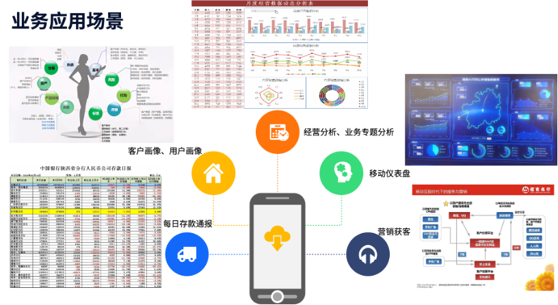盘活数据资产,为总行数据分析人员提供:制定全行数据统一口径、营销管理数据分析、经营数据分析及报表的制作与发布等,实现数据价值整合。